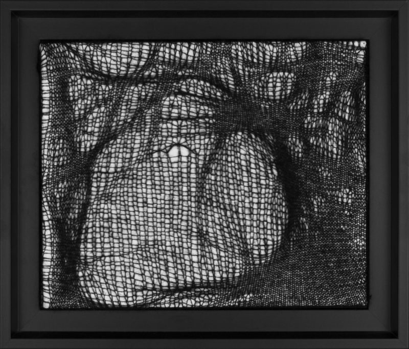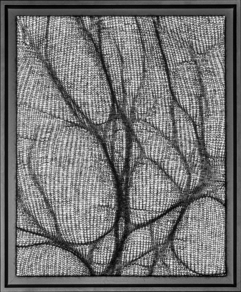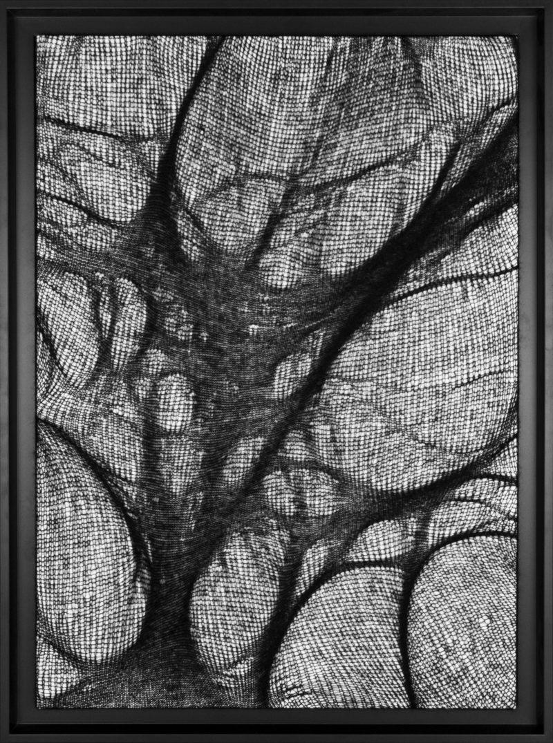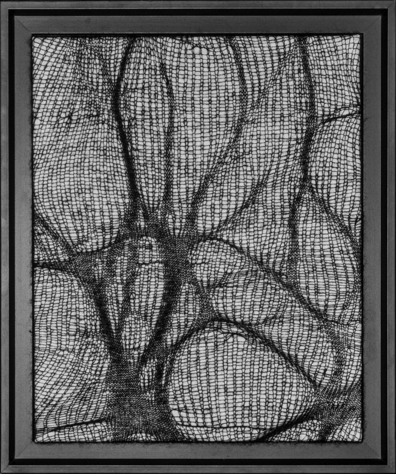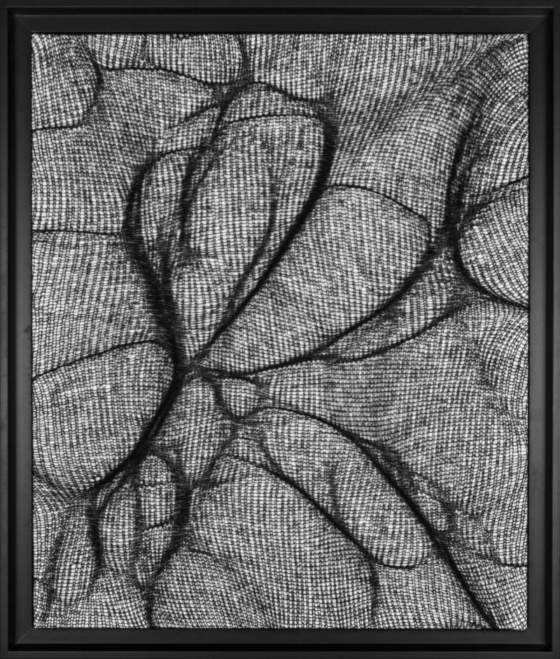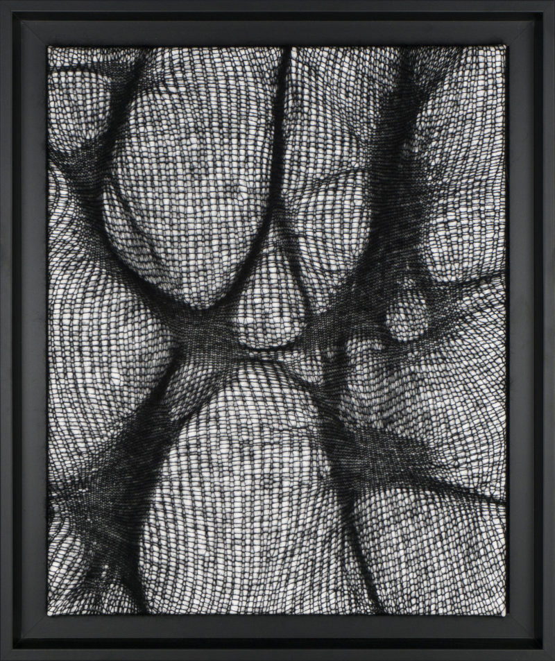 Quoi de mieux pour représenter ces contrastes qu’une ombre tendue. C’est par des jeux de densités que je traduis ces formes révélées par la lumière. Le mohair, léger et dense représente au mieux ces formes étirées et déformées que sont les ombres.