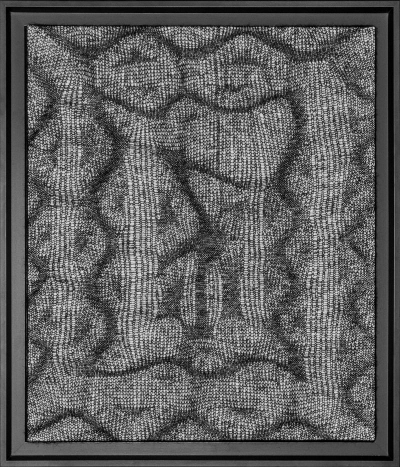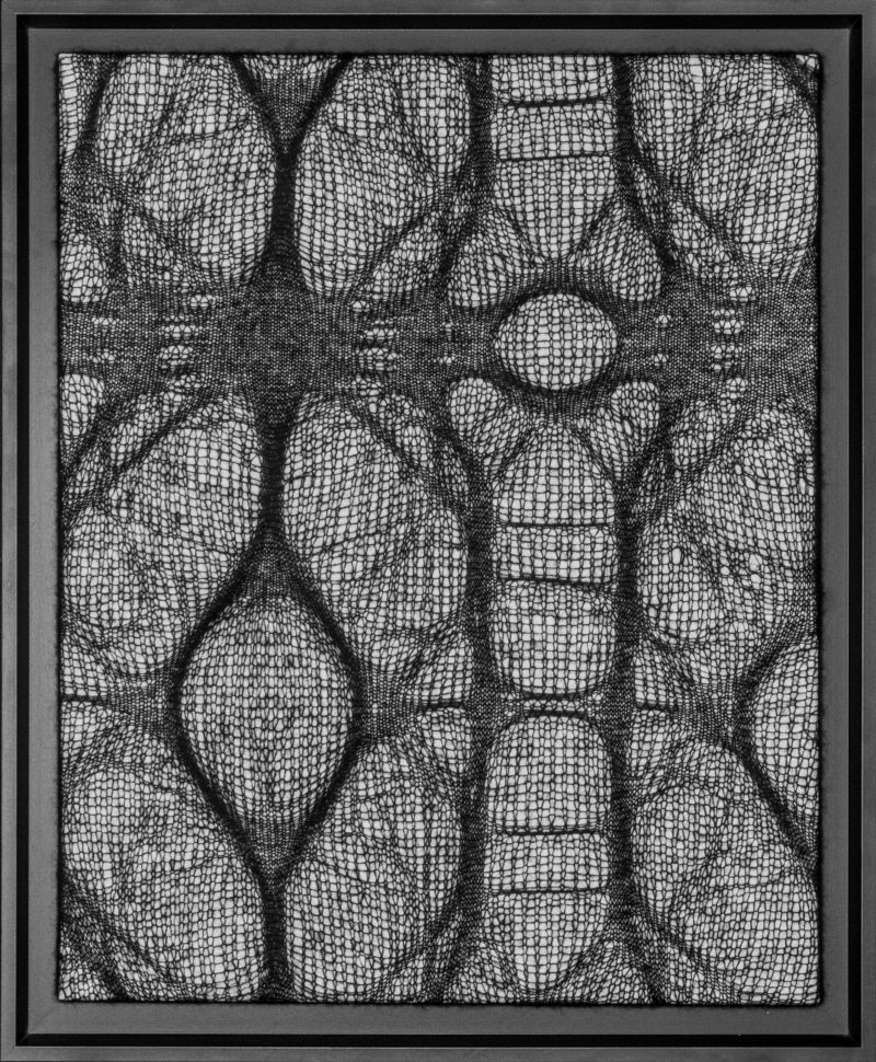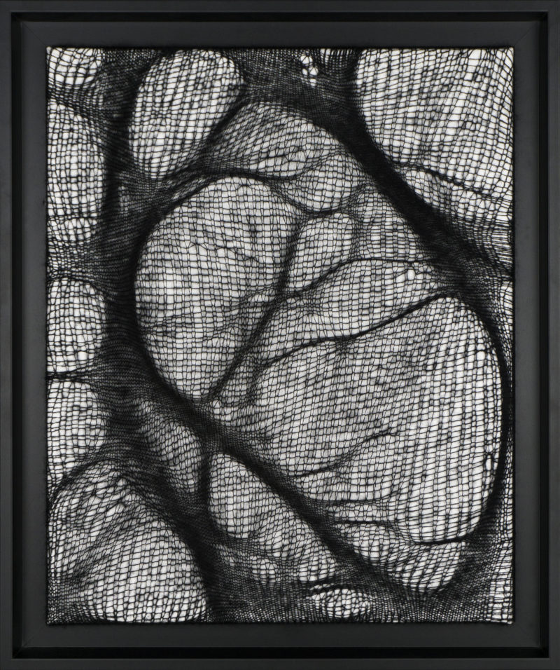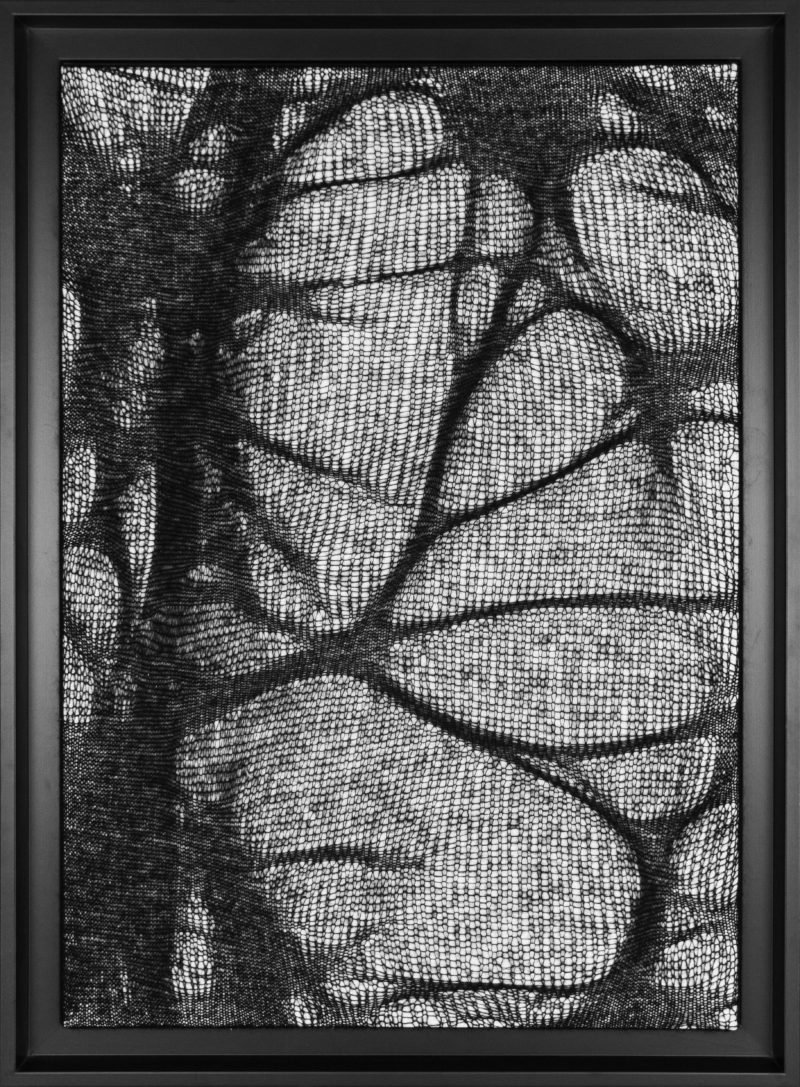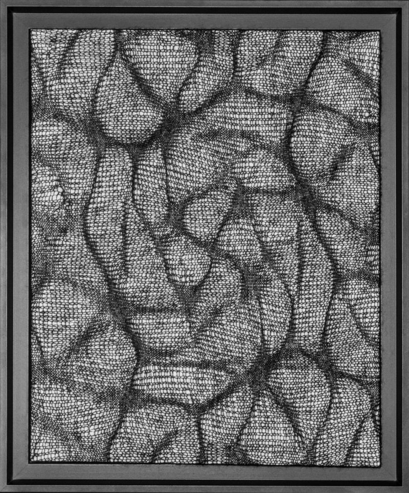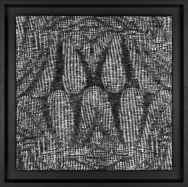 Quoi de mieux pour représenter ces contrastes qu’une ombre tendue. C’est par des jeux de densités que je traduis ces formes révélées par la lumière. Le mohair, léger et dense représente au mieux ces formes étirées et déformées que sont les ombres.