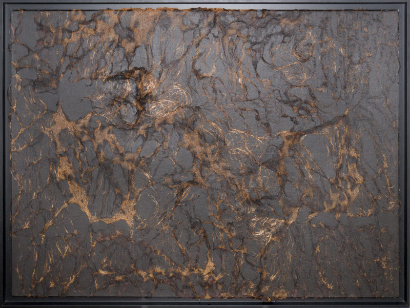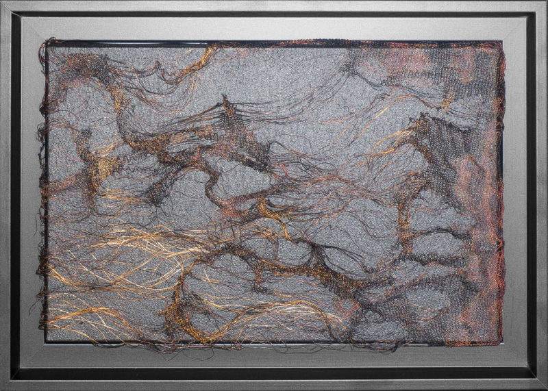 La constante recherche de matières d’exceptions mène à la création d’œuvres artistiques. En alliant sensibilité, savoir-faire et nouveau traitement de la maille et du métal, j’ai crée une nouvelle technique : le « FIRE-Kopper »